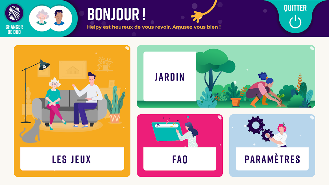 Helpy travaille sur des solutions digitales, ludiques, adaptées et rassurantes pour recréer du lien entre les ainés et leurs proches, et ainsi, recréer du lien social entre les générations.